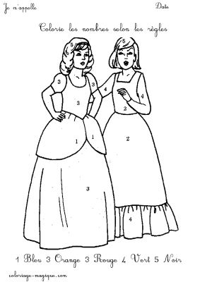 Coloriage représentant deux femmes, à colorier selon les chiffres présents dans les cases (5 couleurs)